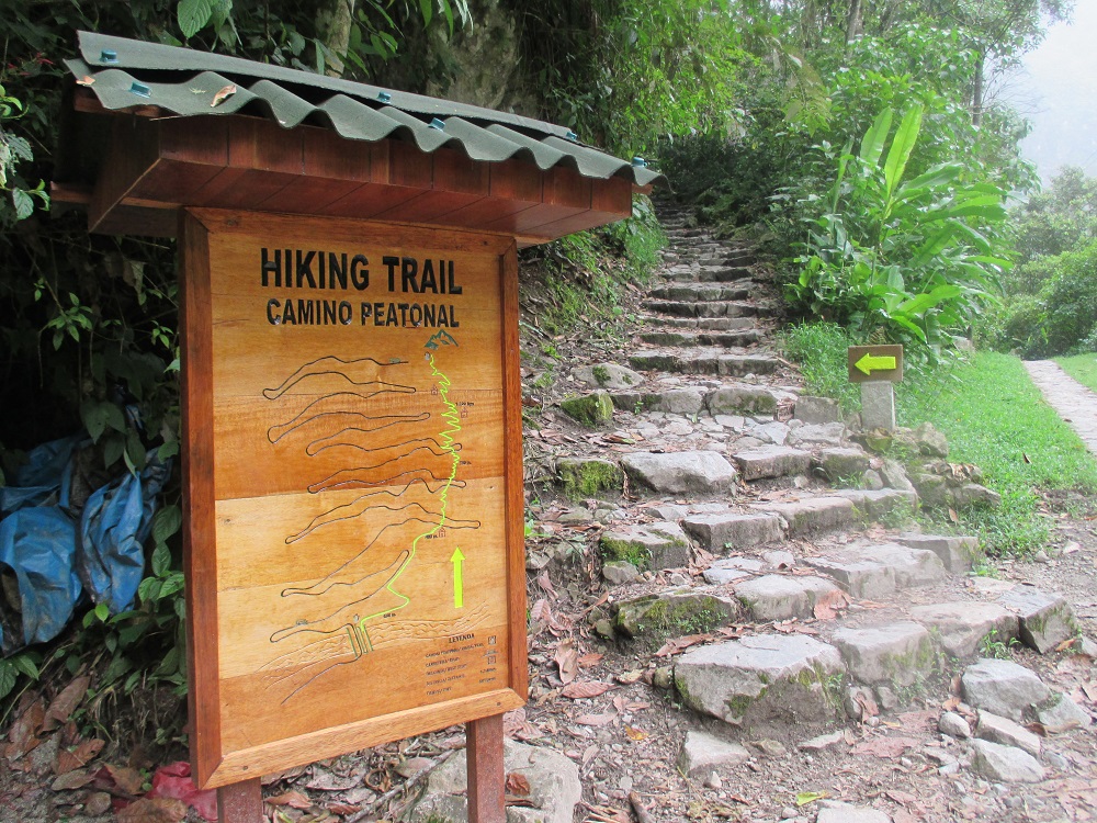 過了橋後就可以看到Trail的入口,無窮無盡的階梯一直往上爬就對了~爬到馬丘比丘山上的入口大概1個小時半,下山會快一點。